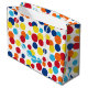 Los puntos de cumpleaños brillantes decoran esta bolsa de regalo festiva. Esta bolsa es genial para un cumpleaños, fiesta de cumpleaños, tema del carnaval, tema del circo, celebración, niños, adultos, etc... El diseño es de arte original.