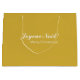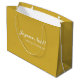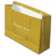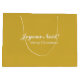Una bolsa de regalo de color dorado con navidad francesa e inglesa. La versión francesa dice "¡Joyeux Noel!", que significa ¡Feliz Navidad!