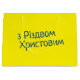 Una bolsa de regalo de Navidades ucranianos azul y amarillo que es los colores de la bandera de Ucrania. Dice "з Р і з д о htíncelas BurnBurnBurnBurn", deseando feliz navidad. El texto es editable. También puede cambiar los colores.