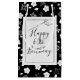 Aguja de coser con hilo y marco cosido negro sobre la huella floral en blanco y negro por 60 años.