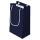 La moderna Bolsa Minimalista de Regalo Náutico cuenta con un ancla blanco con un nombre personalizado en blanco moderno sin estilo de fuente serif sobre fondo azul marino.