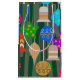 Esta bolsa de regalo tiene un diseño que se parece a los adornos en rojo, verde, azul, rosa, oro, plata y blanco en un árbol de Navidad.