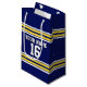 Preppy Sporty Navy Blue con Pineapple Yellow y White Stripes Team Jersey / Sports Jersey / Football Jersey con Nombre personalizado, Personalizado Número Personalizar esto con su propio nombre o nombre de equipo y un número. Puede cambiar el tamaño, el color y la ubicación del texto si necesita realizar cambios, cambiar el color o eliminar la sombra del texto y agregar texto y/o imágenes propias para crear un diseño único. Deportes fantásticos / Deportes fantásticos