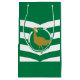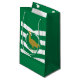 Bolsa de papel con diseño con una bandera del condado histórico de Wiltshire, en Inglaterra, Gran Bretaña; bandera blanca y verde con rayas anguladas y gran bustaza en el centro
