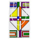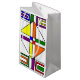 Esta bolsa de regalo tiene un diseño Bauhaus de líneas, triángulos, diamantes y cuadrados, haciendo una apariencia de vidrio manchado en colores primarios y secundarios.