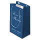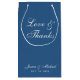 Una clásica bolsa de malezas azules. Sólo tiene texto blanco sobre fondo azul clásico. El mensaje "Amor y Gracias" y los nombres de la novia y el novio están escritos en caligrafía elegante.