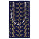 Esta bolsa de regalo tiene un diseño Art Déco de triángulos y diamantes que parecen bolas en azul y oro.