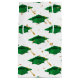 Gorra verde de graduación con confeti dorado sobre fondo blanco. Se puede cambiar el color de fondo.