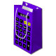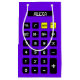 Calculadora púrpura con nombre y botones de teclado negros y amarillos. El nombre de la pantalla de la calculadora se puede cambiar o eliminar.