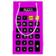 Calculadora rosa caliente con botones de teclado de nombre y negro y amarillo. El nombre de la pantalla de la calculadora se puede cambiar o eliminar.