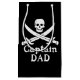 ¡Avast, lubbers! ¡Tirarme los maderos! Capitán Papá, muestra a su escurridizo equipo que es el jefe con la clásica bandera pirata: un cráneo y unos lentes cruzados. ¿Sabio?