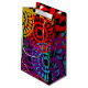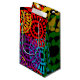 Esta bolsa de regalo tiene un diseño de historia negra de grandes círculos formados de formas de gotas de lluvia y círculos en rojo, amarillo, púrpura, verde y turquesa.