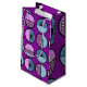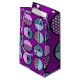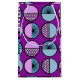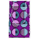 Esta bolsa de regalo tiene un diseño moderno de mitad de siglo de círculos, algunos con estallidos, algunos con círculos pequeños, y otros simplemente sólidos, en azul y violeta.
