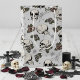 Dibujado a mano con tinta negra, esta bolsa de regalo presenta un hermoso patrón de cráneos, rosas y telarañas en tonos crema y rubor, todo con un elegante fondo gris claro.