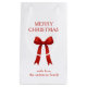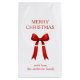Bolsa de regalo para Navidades amables con un diseño simple y minimalista con un arco rojo junto con el saludo "Feliz Navidad" y el nombre de tu familia.