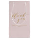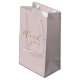 Muestre su gratitud con estilo con esta bolsa de regalo pequeña para despedida de soltera con elegante escritura rosa personalizada. Con un suave fondo rosa y elegante escritura, esta bolsa es perfecta para presentar pequeños regalos o favores a sus invitados. El diseño elegante añade un toque personalizado, lo que la convierte en un hermoso recuerdo para su despedida de soltera. Personalícela con su propio mensaje para crear una forma atenta y elegante de agradecer a sus invitados por celebrar con usted.
