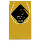 Bolsa de regalo de graduación con diseño creativo de gorra negra y dorada y línea de felicitaciones en fondo amarillo. Para personalizar, edite el texto para agregar el año y el nombre de su graduado favorito de la clase superior.