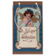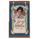 Ilustración antigua del día festivo Feliz Día de San Valentín victoriano que presenta a un querubín que lleva un sombrero de cartero y que está entregando el correo, cartas de amor a mi San Valentín. Ephemera antigua de amor y romance. Un borde dorado decorativo rodeado de corazones de oro sobre un fondo azul.