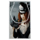 Mujer de cabello rojo Steampunk en una caminata de invierno liberando su mensajero de libélula con una llave.