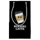 Bolsa De Regalo Pequeña Ejecutando Latte Funny Coffee Pun Dark BG