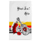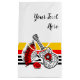 Diseño caprichoso de estilo retro con recuerdos de una fiesta española; guitarra de hierro forjado, ventilador de encaje y rosa roja sobre fondo a rayas. Un diseño de personalizable en blanco, negro, rojo y amarillo dorado para que puedas personalizar con tu propio texto, imágenes e ideas. Imagen original de arte digital.