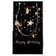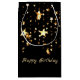 Elegantes estrellas doradas brillantes sobre fondo negro.