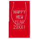 Feliz Año Nuevo personalizado rojo y blanco número año texto moderno Bolsa de regalo disponible en muchos tamaños