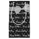 Feliz cumpleaños texto y arco de oveja blanca sobre fondo de un punto de polka blanco y negro.