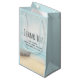 Gracias bolso de regalo con una hermosa imagen rústica. Tonos sutiles de azul claro, marrón arenoso y blanco suave. Escena de playa con un barco a orillas del mar con una red de pesca colgando de un lado. Una elegante mirada de mal gusto.