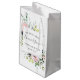 Estas elegantes bolsas de regalo para la cena de ensayo presentan flores rosadas acentuadas con hojas verdes y ramas de sauce aqua bajo un cuadrado blanco. "Nuestro para siempre comienza mañana" junto con los nombres de la pareja y la fecha de la boda están en el centro. Este diseño complementa mis invitaciones de boda y ducha "Ramo floral de rosa rosa". Los acentos florales y de follaje funcionarían perfectamente con cualquier cena de ensayo al aire libre con tema rústico y shabby. Serían la forma perfecta de presentar un regalo especial al grupo de la novia y a los padres en la cena de ensayo.