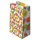 Esta bolsa de regalo tiene un diseño escandinavo de flor y hojas esparcidas por el coral, el oro y el verde salado.