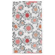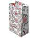 Esta bolsa de regalo tiene un diseño moderno de mediados de siglo de flores hechas de círculos en tonos rosas, arándanos y beige y líneas negras.