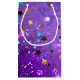 Bolsa De Regalo Pequeña Fondo de Relieve metalizado púrpura con estrellas