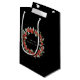 Elegante, bolsa de regalo negra de Navidad / Vacaciones personalizada con una corona de frambuesas rojas y eucalipto pintados a mano. Todo el texto es totalmente editable, lo que le permite cambiar fácilmente el estilo, color y tamaño de la letra y eliminar o mover el texto. Bolsas de diferentes tamaños y artículos coordinados disponibles en mi tienda.