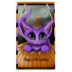 El detalle de mi "es I asustadizo?" pintura - un pequeño gatito púrpura en una calabaza tallada con el top en su cabeza. El cielo nocturno, la luna, y la niebla están en el fondo. La imagen por todo el bolso es naranja rayado, púrpura, y rayas negras. Hay un campo del texto en el frente y otro en la parte posterior que usted puede corregir. Usted puede también hacer clic en el "personalizar él!" abotone para añadir más texto, imágenes, etc. para crear sus los propios diseño