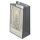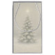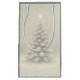 Snowy Holiday gift bag with beautiful snow covered Christmas tree and white lights.