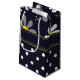 Una bolsa de regalo con un patrón de flor mod ondulada girículamente retro en la parte superior con margaritas blancas con centros amarillos contra un fondo azul marino, y un patrón de puntas polka azul y blanco en la parte inferior. Personalice agregando el nombre del destinatario. Un regalo perfecto para una chica elegante.