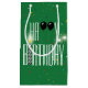 White Happy Birthday texto sobre el fondo verde con confetti, velas, globos negros y chispas. Se puede cambiar el color de fondo.