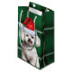 A los amantes del perro les encantará recibir o regalar esta linda y divertida bolsa de regalos de vacaciones con un adorable perro Bichon Frise en un sombrero de Santa sobre un fondo verde estacional adornado con estampado.