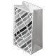 Patrón geométrico lineal, rectangular, rayado de tonos plateados, grises y negros.