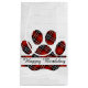 Papel de mascota trenzado rojo y negro con texto de cumpleaños feliz sobre madera pintada de blanco descolorido. El texto es editable.