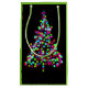 Las luces de un árbol de Navidad forman un impresionante efecto bokeh en tonos rosa, azul, verde y morado sobre negro.