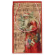 Santa nostálgico en la capa roja larga que lleva un pequeño árbol imperecedero nevado junto con porciones de juguetes. Detrás de es un pedazo de partitura. Otros artículos a juego disponibles
