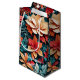 This Christmas gift bag design bursts with festive cheer through a stunning paper-art floral pattern. Featuring layered poinsettia-inspired blossoms in shades of red, coral, gold, and teal, it blends modern elegance with holiday warmth. The intricate cut-paper texture creates a handcrafted look, while the rich color palette evokes a cozy, joyful celebration. Perfect for wrapping special gifts, this design brings a touch of artistic sophistication and Christmas magic to every present.