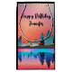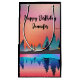 Una bolsa de regalo con un bonito diseño gráfico que presenta un tranquilo lago con ciervos y altos pinos reflejados en el agua. Las estrellas se ciernen sobre sus cabezas.