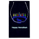 Cuenta con una menorah de Chanukkah con tema de león, con las ocho velas y la quema de shamash. Chanukkah es el "Festival de las Luces" de mediados de invierno. El texto que dice "Feliz Hanukkah" aparece en azul brillante y blanco.