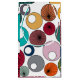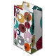 This gift bag has a mid-century modern design of circles with starbursts and circles with circles inside in retro colors.