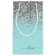 Bolsa De Regalo Pequeña Monograma de brillo plateado y azul turquesa