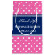Patrón de puntos de polka blanco y rosado con acento azul real gracias a las bolsas de regalo. Pequeños puntos de polka blanca sobre rosa caliente y en el centro hay un rectángulo azul real para añadir tu texto.