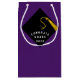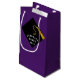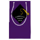 Bolsa de regalo de graduación con diseño de gorra negra y dorada y línea de felicitaciones sobre fondo morado. Para personalizar, edite el texto para agregar el año y el nombre de su graduado favorito de la clase superior.
